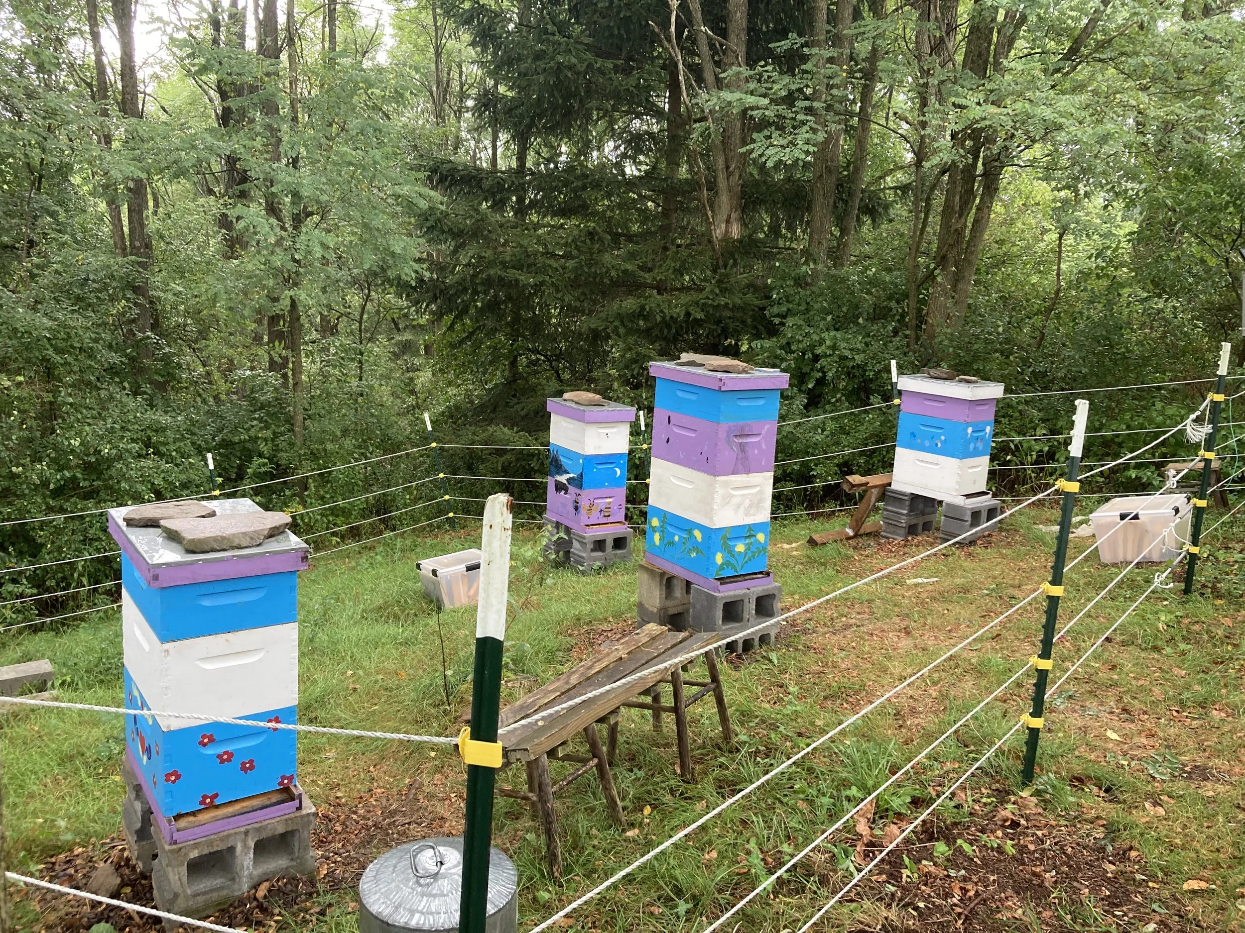 Our bees are Carniolan mutts - suited to winter and the wild. They gather from the rich diversity of wildflowers and flowering trees at the farm to form a delicious and unique honey that changes with the season. Kept without artificial chemicals and as much respecting their rhythm and ways as possible. We hope you will agree as we do that this is the best honey!